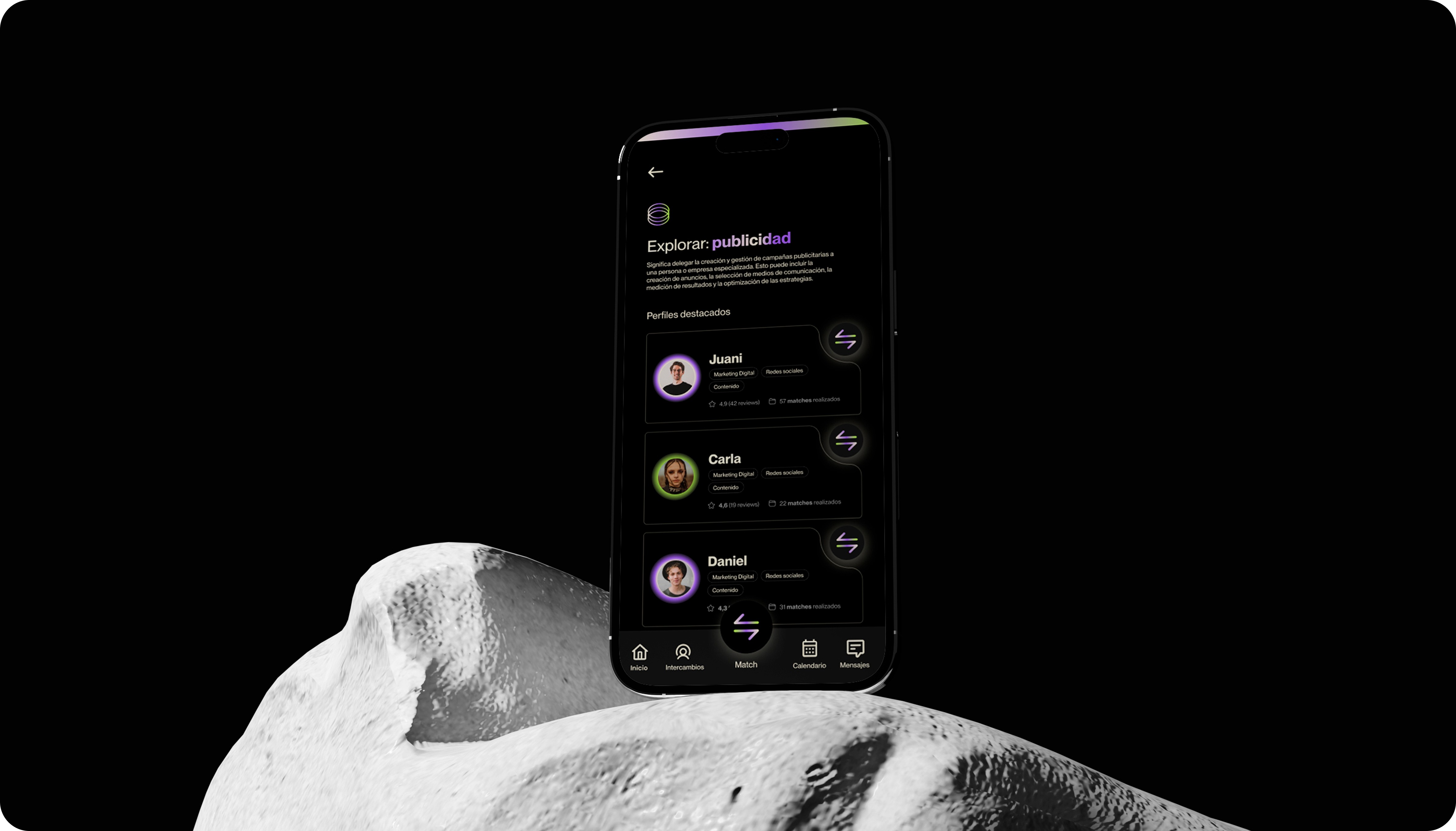 Además, desarrollé un sistema visual basado en componentes reutilizables, siguiendo principios de atomic design, y le di identidad a la interfaz con una estética que remite a la conexión, el intercambio y el crecimiento mutuo.
